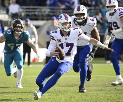 1 of 5 | Buffalo Bills quarterback Josh Allen completed a career-high 69.3% of his throws in 2025. File Photo by Joe Marino/UPI | License Photo