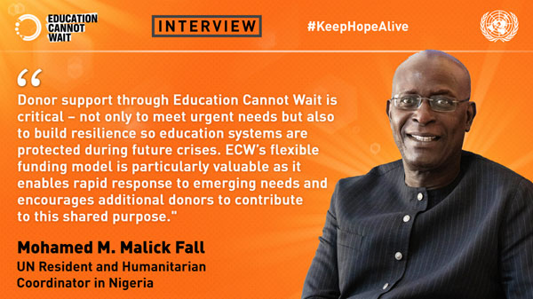 ECW: Today, there are 18.3 million children out of school in Nigeria. How can relevant organizations – UN agencies, civil society organizations and ECW – work better together with national/state/local governments to get these girls and boys into safe and protective learning environments?