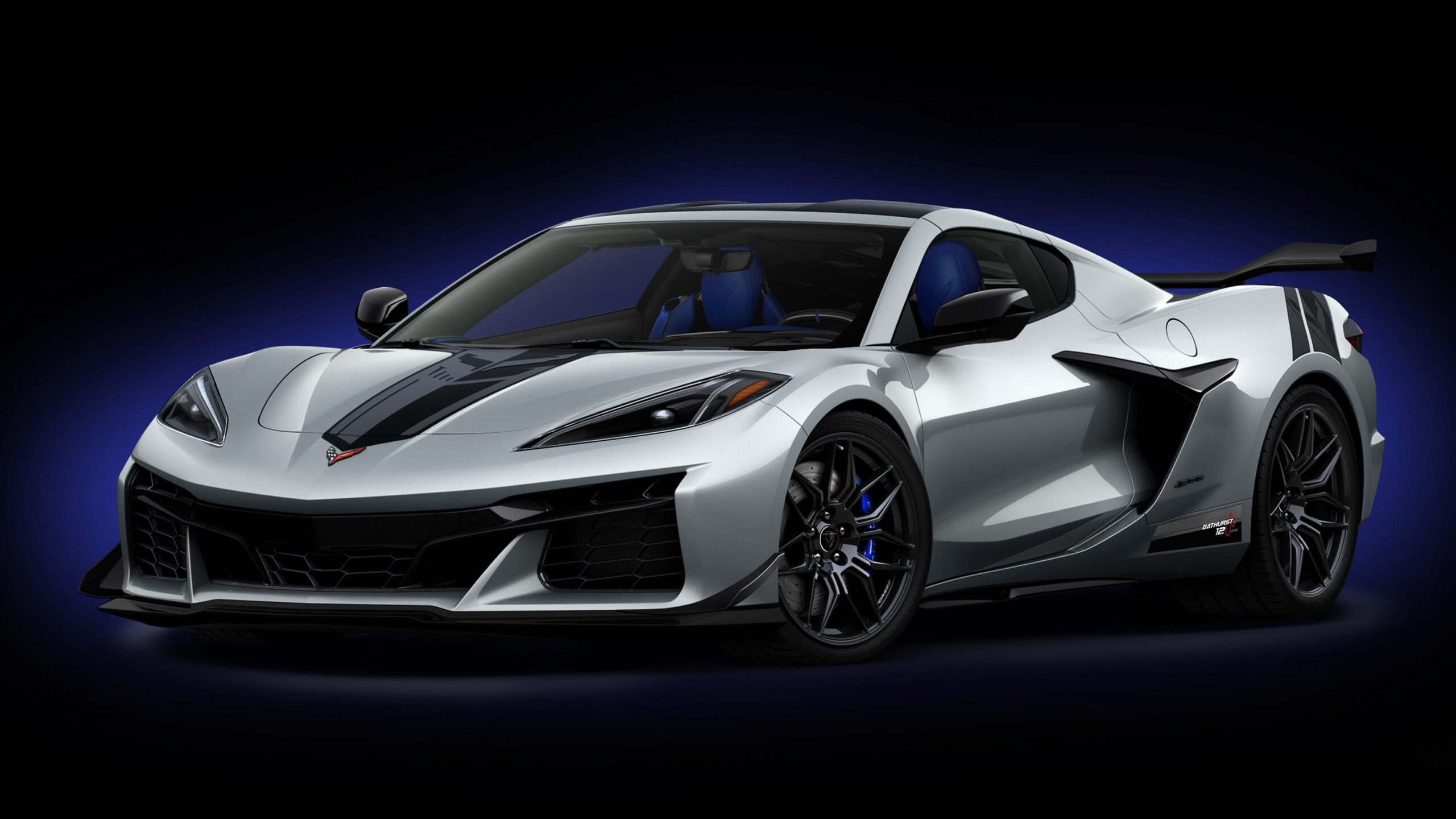 As for the hardware, this special 2026 Corvette Z06 will be built on the 3LZ Coupe and include the Z07 Performance Package. It will be painted in Switchblade Silver; Carbon Flash covers the carbon-fiber ground effects and rear wing as well as the exterior badges, trim, and mirrors. The roof is finished with clear coat to show off the ultra-lightweight carbon’s weave pattern. To signify the racing connection, the “Jake” C8.R graphics package adorns the hood and rear quarter panels.