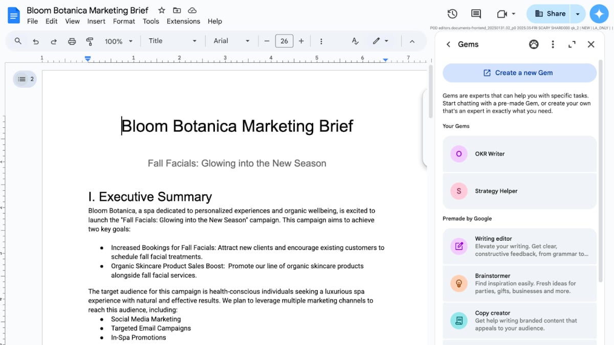 Available in the Gemini app, Gems will now also appear in a side panel in Google Docs, Sheets, Drive, Slides, and Gmail — the latest in a number of big AI updates in Workspace.