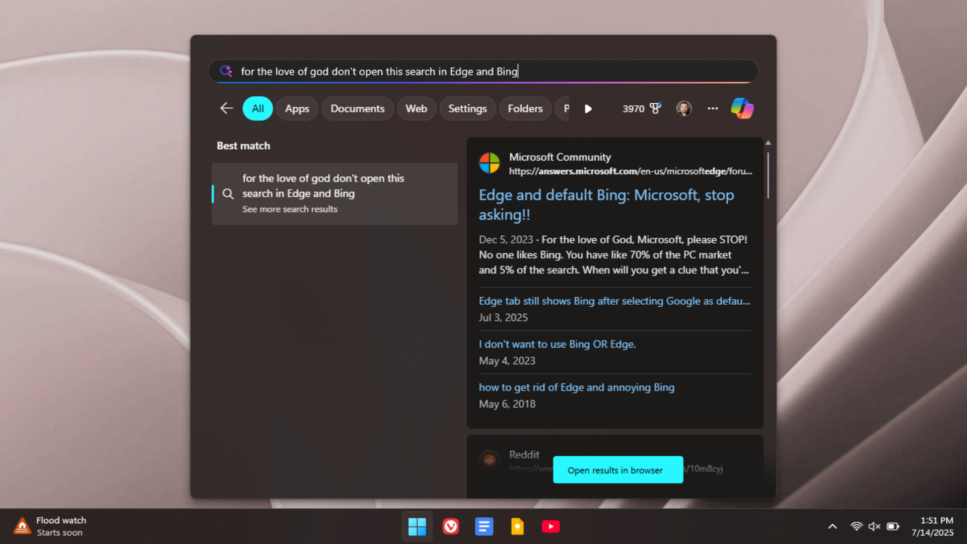 I like Windows 11 a lot less than I liked Windows 10—and that was before it started advertising to me incessantly and filling up every nook and cranny of the experience with “AI” I neither wanted nor asked for. But one of the oldest annoyances is that it still demands I use Microsoft’s Edge browser and Bing search for everything…