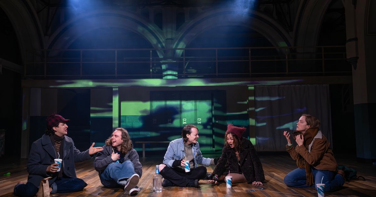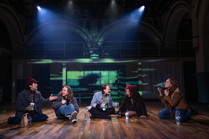 It’s this sensation—a feeling of swimming through waters that long ago flowed on and out into the ocean—that the playwright Else Went captures so potently in Initiative. Developed over the last ten years with the collaboration of their wife, the director Emma Rosa Went, as well as many of the actors who are now on stage in its premiere at the Public, the show has both the patience and the pain of maturity. It feels slow-cooked, basted in rich juices and allowed to simmer. That the production is five hours long—three 90-minute acts unfolding over the course of the central characters’ four years in high school, plus intermissions—is certainly crucial to this quality, but it’s the pace and texture, rather than the length per se, that really distinguish Initiative. A play can run a marathon (see Gatz) or it can brew like tea, building a somatic experience that concentrates and darkens over time. This steeped and tannic quality is what keeps the Wents’ project—notwithstanding the Jimmy Eat World and Sugarcult blasting during the preshow, the dramatized AIM chats of its characters, and the Dungeons & Dragons sessions that become central to its story—distinct from nostalgia. Nostalgia is about consuming a version of the past as comfort food. Initiative is—to steal a “good 50-cent word” from one of its characters—elegiac. It’s about loss and survival and the way in which imagination can become as tangible and critical as a climbing rope on a cliff face.