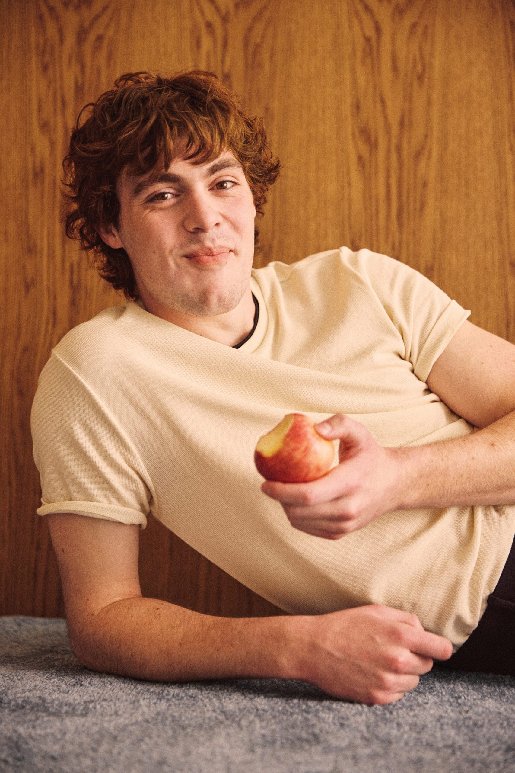 JC: They’re just really chill people. All of them have amazing stillness—if you ever go and watch another one of their movies, they keep eye contact, and they have this stillness while they are acting that, for lack of a better word, has aura to it. It’s so 2025, but it has this. Versus me being like, “Hey, man, give me your money,” it’s like [in a serious voice and with an intense facial expression], “Give me your money.” There’s just a stillness—like the world just stopped and the only person existing is you and them.