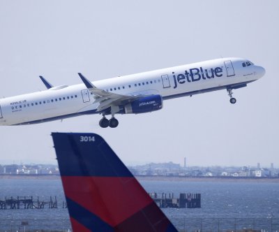 A JetBlue plane takes off from JFK Airport on March 11, 2019, in New York City. The airline is ending service to Miami International Airport. The airline offers service from Miami to JFK via Boston. File photo by John Angelillo/UPI | License Photo