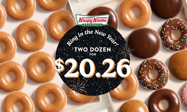 Today through New Year’s Day, Krispy Kreme is offering two deals to ring in the New Year: