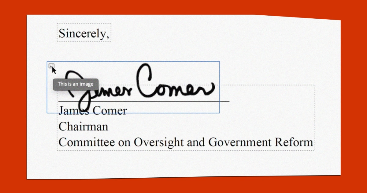 There is precedent for sending letters with digital signatures like the ones Comer is sending. Most of the ones sent to investigatory targets in the Jan. 6 Select Committee investigation were signed digitally, and committee staff argue the chairman is adhering to a long-held congressional standard.