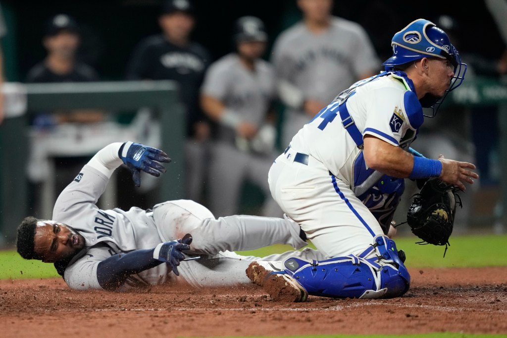 With Aaron Judge getting at least the start of the night off, the Yankees struggled to do much without him before scrapping a run across in chaotic fashion in the top of the eighth to escape Kauffman Stadium with a 1-0 win over the Royals.