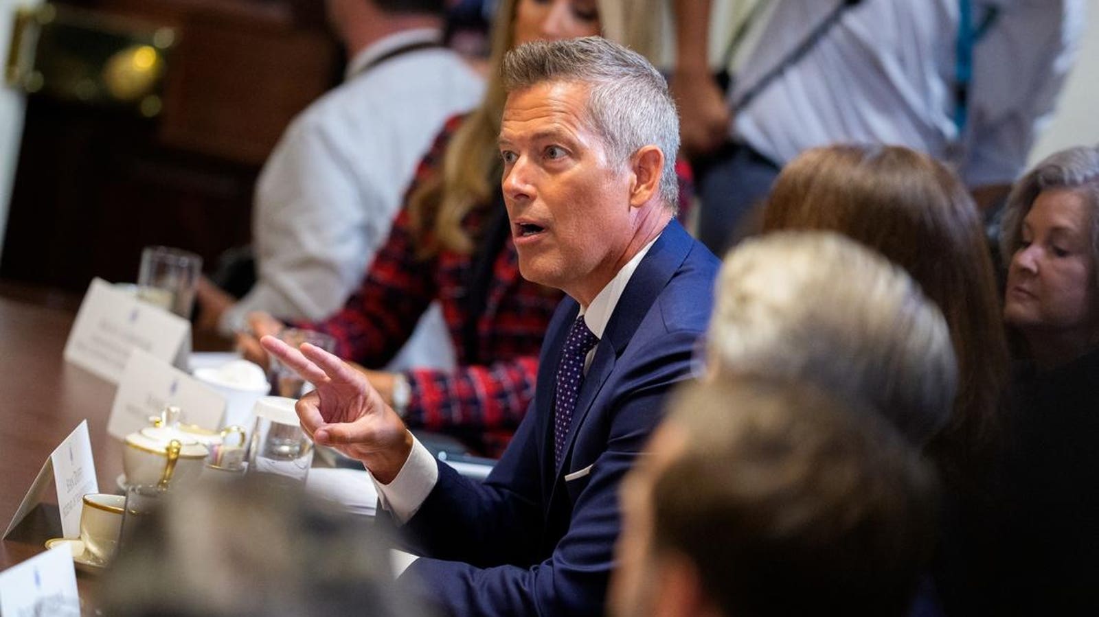 Transportation Secretary Sean Duffy speaks during a Cabinet Meeting with U.S. President Donald Trump … More at the White House.