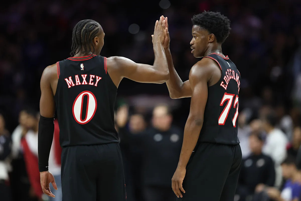 Tyrese Maxey thanks the basketball gods for the Philadelphia 76ers landing rookie guard VJ Edgecombe…