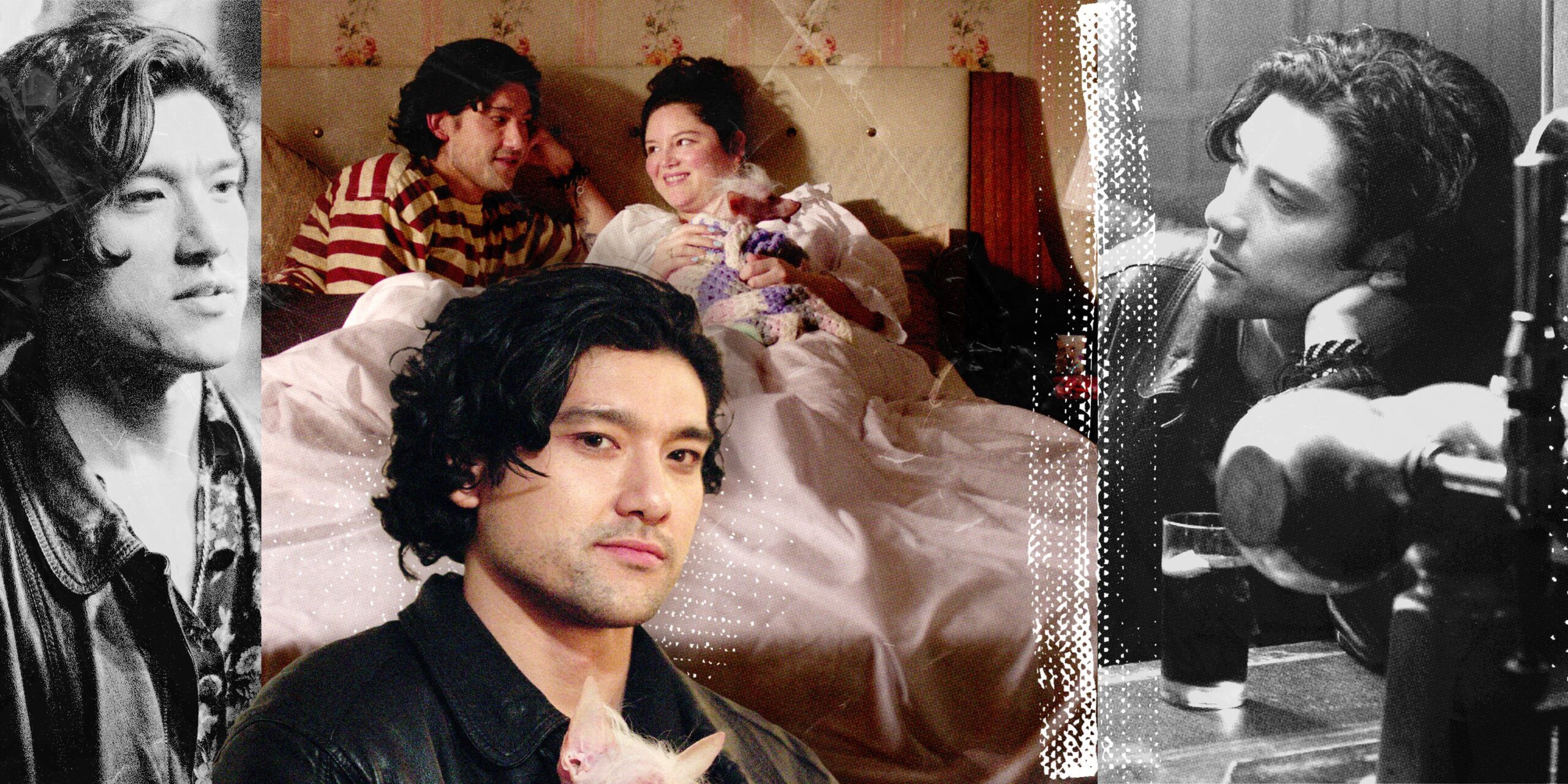 Felix, his character in Too Much, is a struggling musician in London—a pessimist trying to find his place in life. Jess (Stalter) is a bright-eyed American who moves to London after a big breakup and is obsessed with British romance. Together they are a mess, but a match nonetheless. Despite their many differences, they can’t help but come back to each other, for better and for worse. Although Sharpe had some experience with music, having played in high school bands, he was still nervous to film. “It was quite scary sometimes, because I hadn’t done it for ages,” he says.